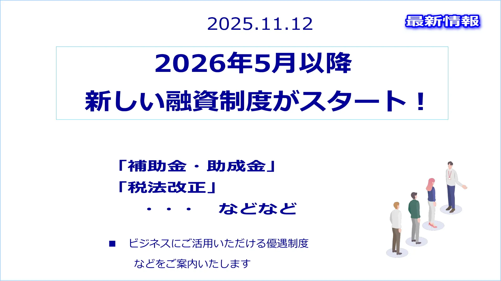中堅中小企業で活用できる補助金等の最新情報をご案内します